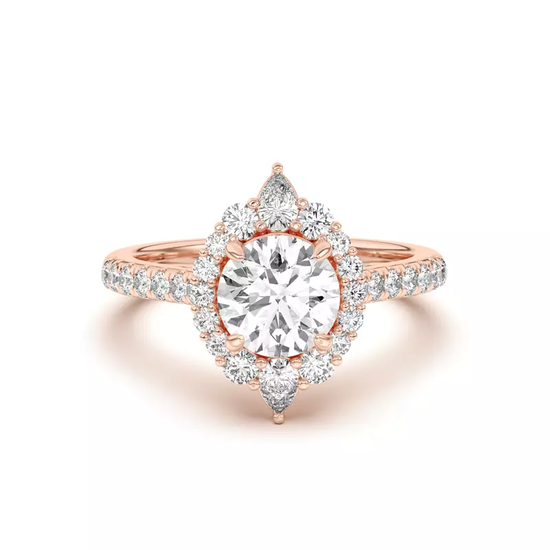 Lexa Round and Pear Diamond Halo Engagement Ring