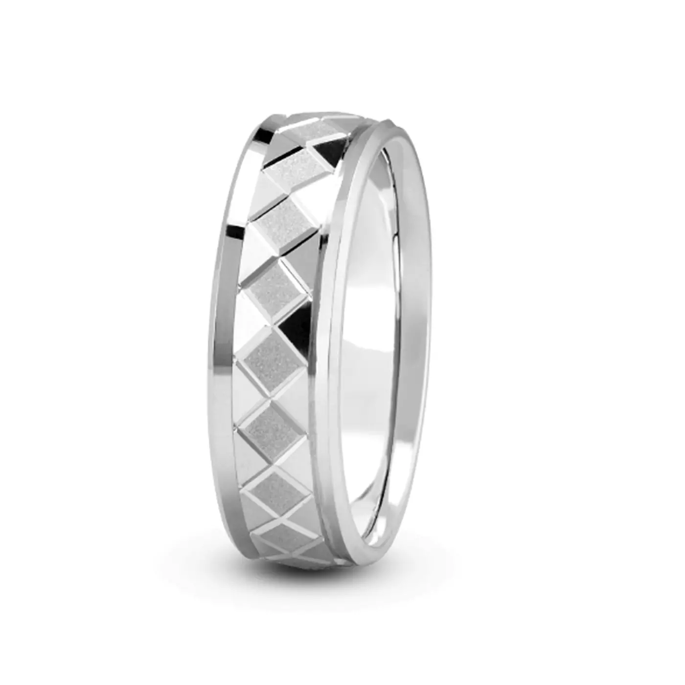 Diagonal Diamond Cut Carved Band (4mm)14K White Gold$918 $1,530