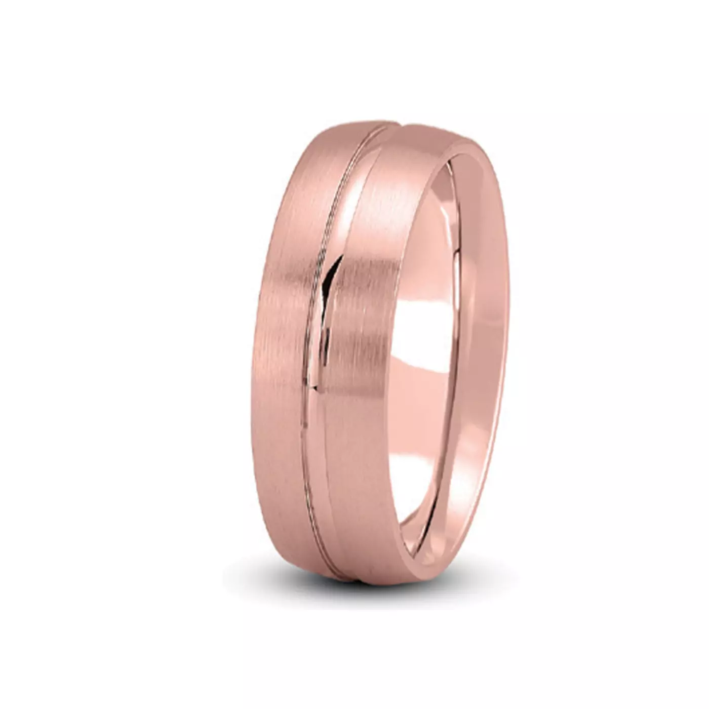 Satin Center Knurled Edge Comfort-Fit Band (6.5mm)14K Rose Gold$1,758 $2,930
