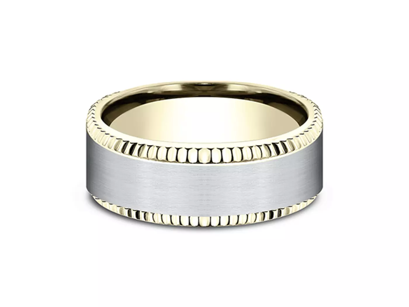 Satin Finish Milgrain Beveled Edge Comfort Fit Band (7mm)White Gold 14k & Yellow Gold 14k$1,242 $2,070
