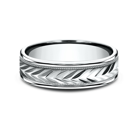 Etched Grain Beveled Edge Comfort-Fit Band (6mm)