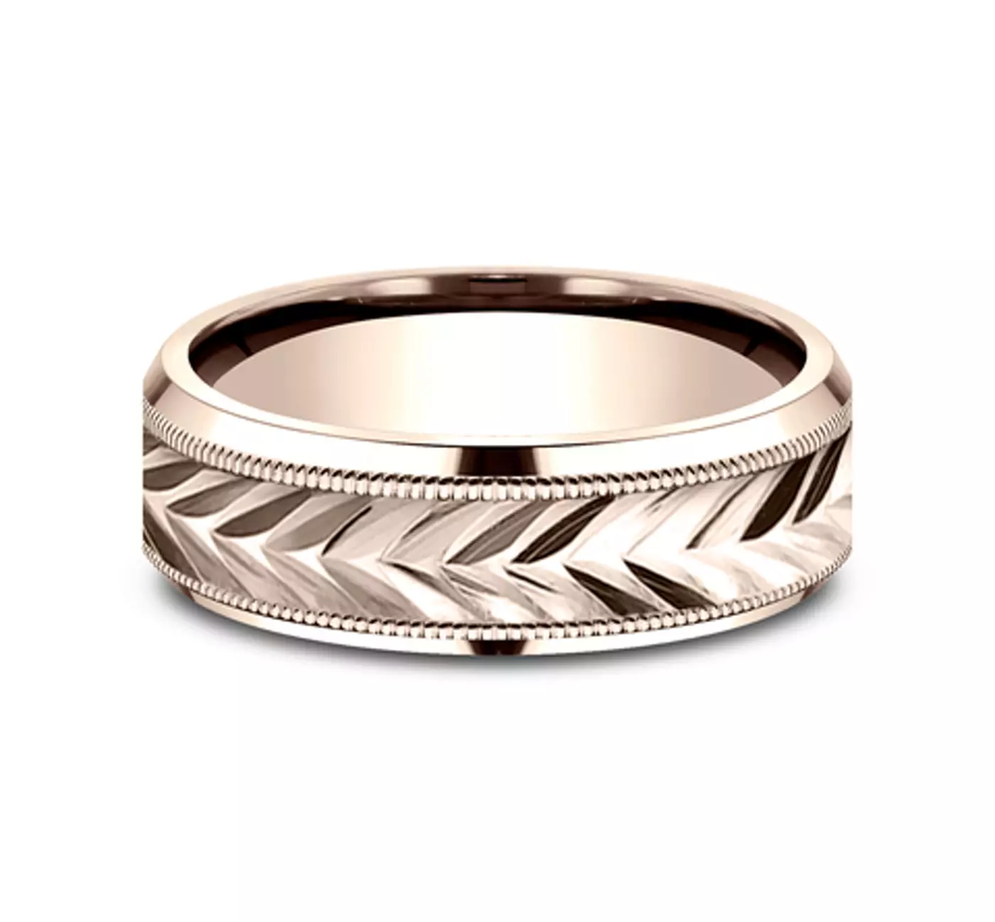 Etched Grain Beveled Edge Comfort-Fit Band (7mm)