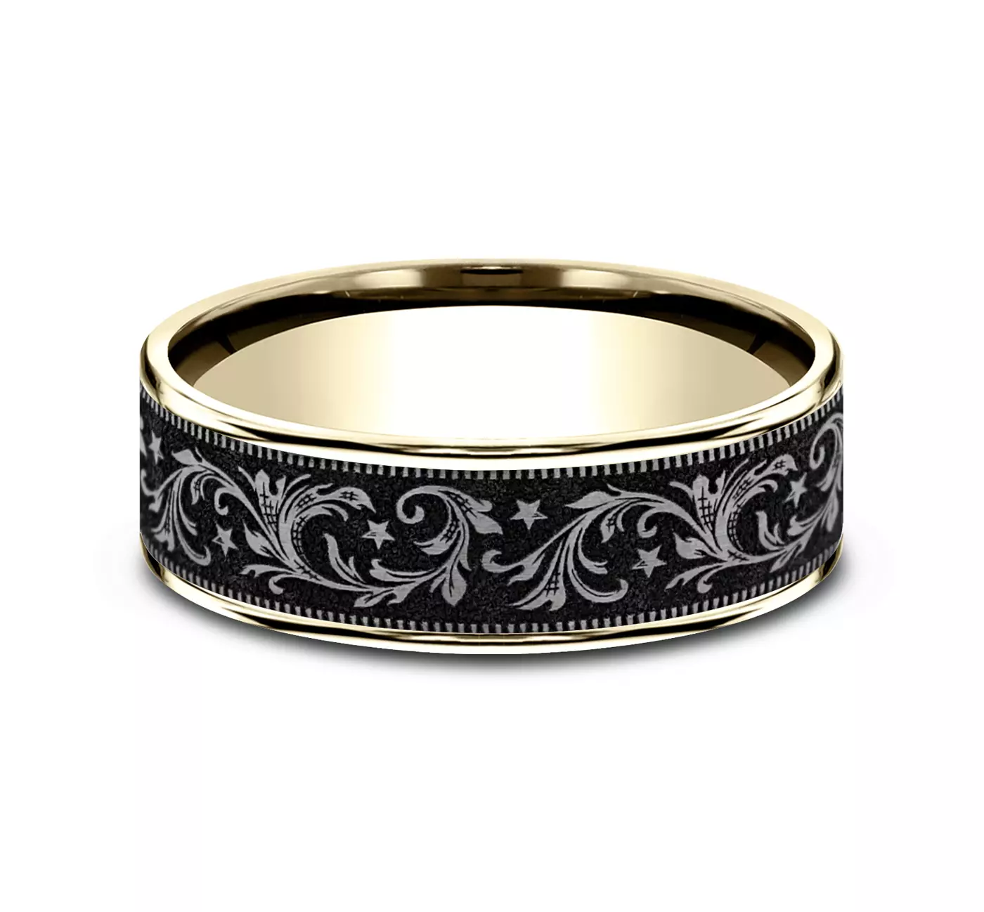 Midnight Star Engraved Comfort-Fit Band (7.5mm)Yellow Gold 14k & Titanium$1,416 $2,360