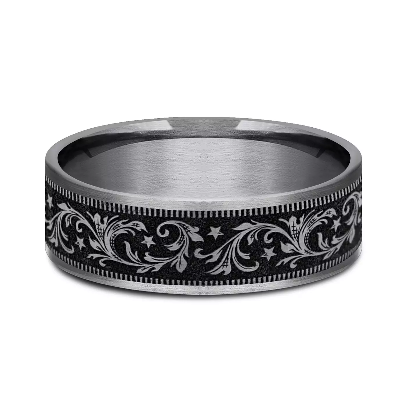 Noir Star Engraved Two-Tone Comfort-Fit Band (7.5mm)