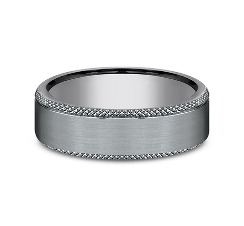 Satin Grey Tantalum Knurled Edge Comfort Fit Band (6.5mm)