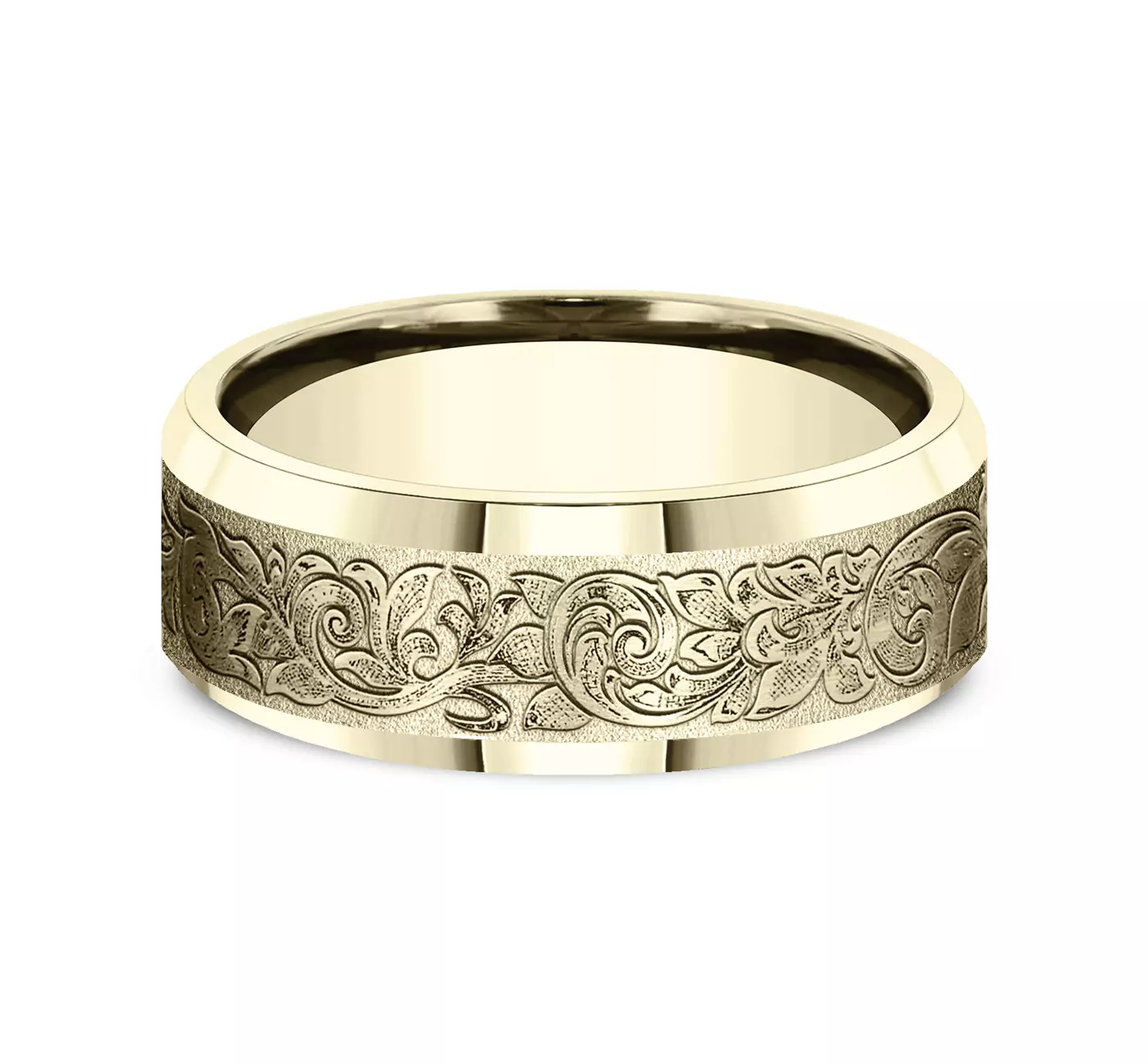 Two-Tone Carved Brushed Band With Swiss Cut Design (6.5mm)14K Yellow Gold$1,104 $1,840