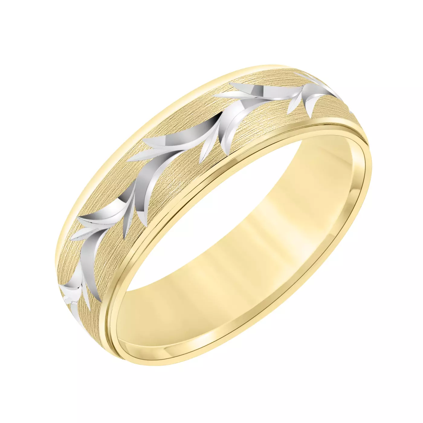 Two-Tone Carved Brushed Band With Swiss Cut Design (6.5mm)
