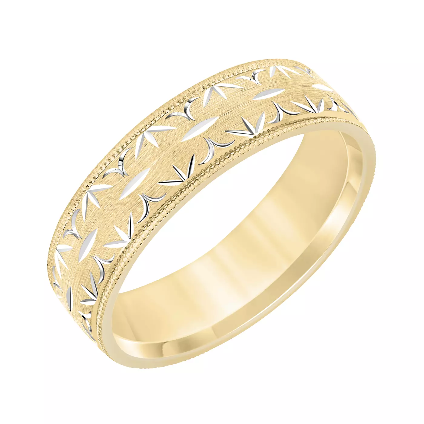 Two-Tone Carved Geometric And Milgrain Band (6mm)