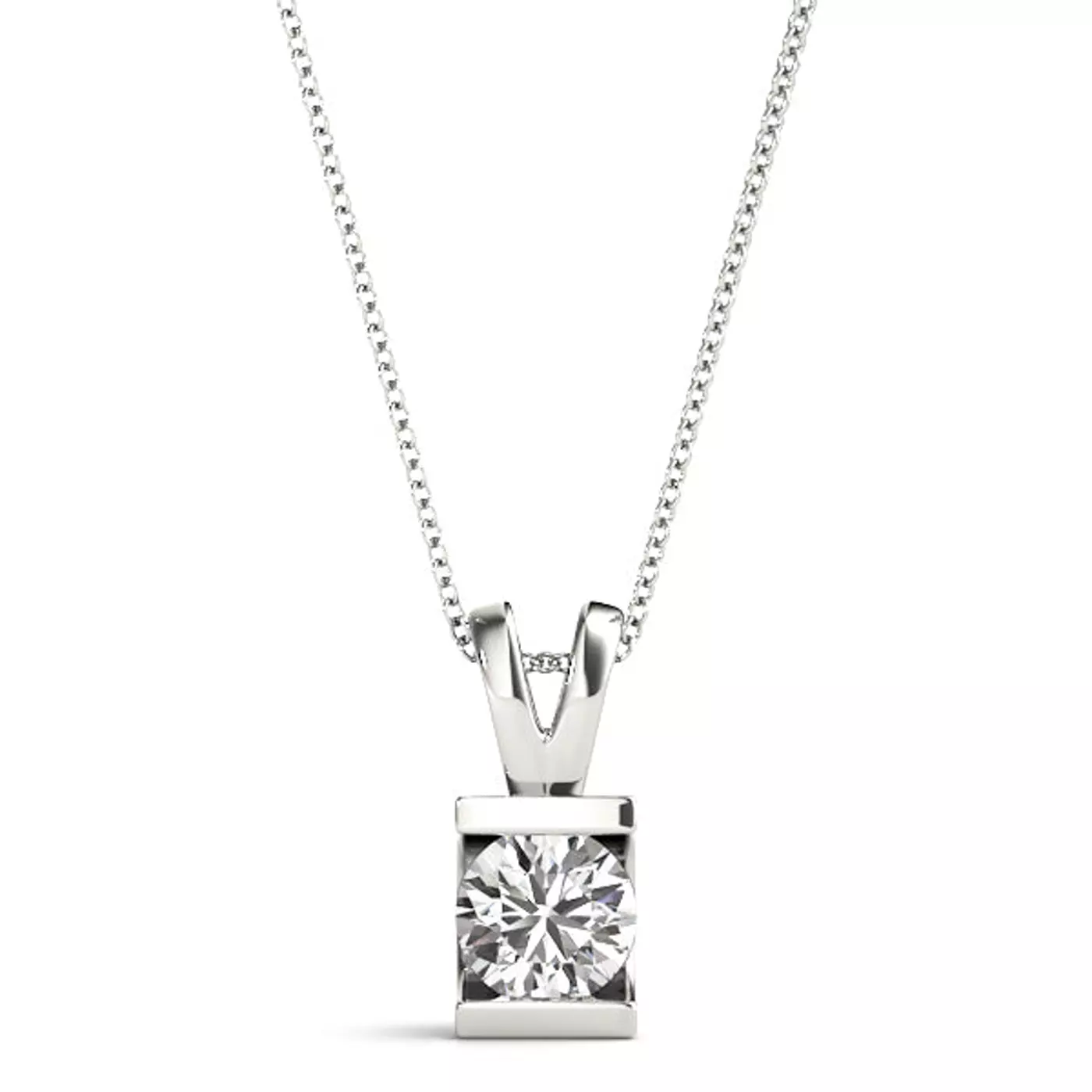 Round Lab Diamond Solitaire Necklace With Creased Bail (1/4 ct. tw.)14K White Gold$466 $776