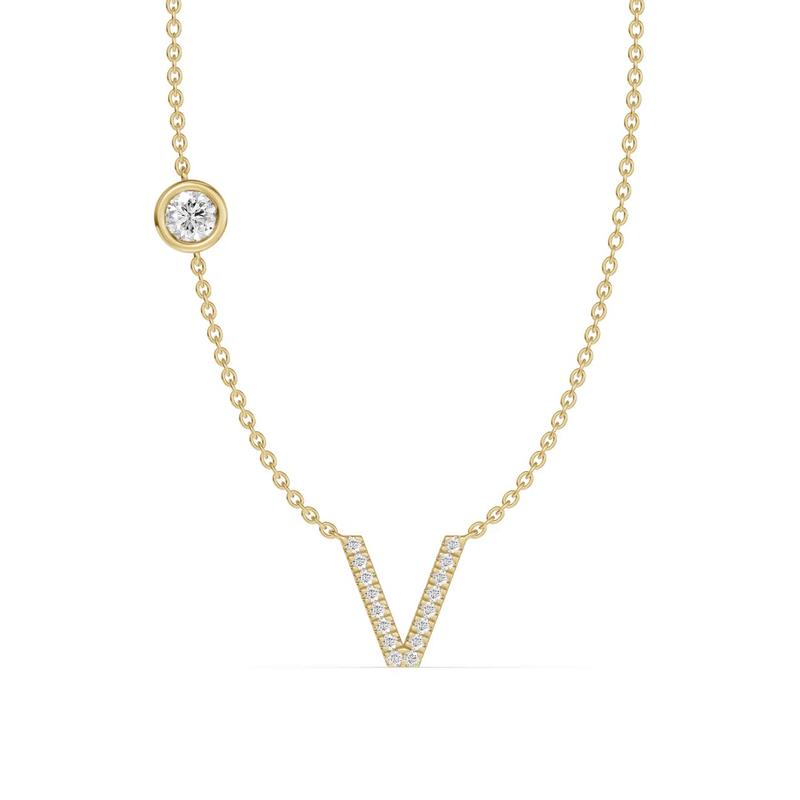Bezel Lab Diamond Pavé Initial Necklace - V